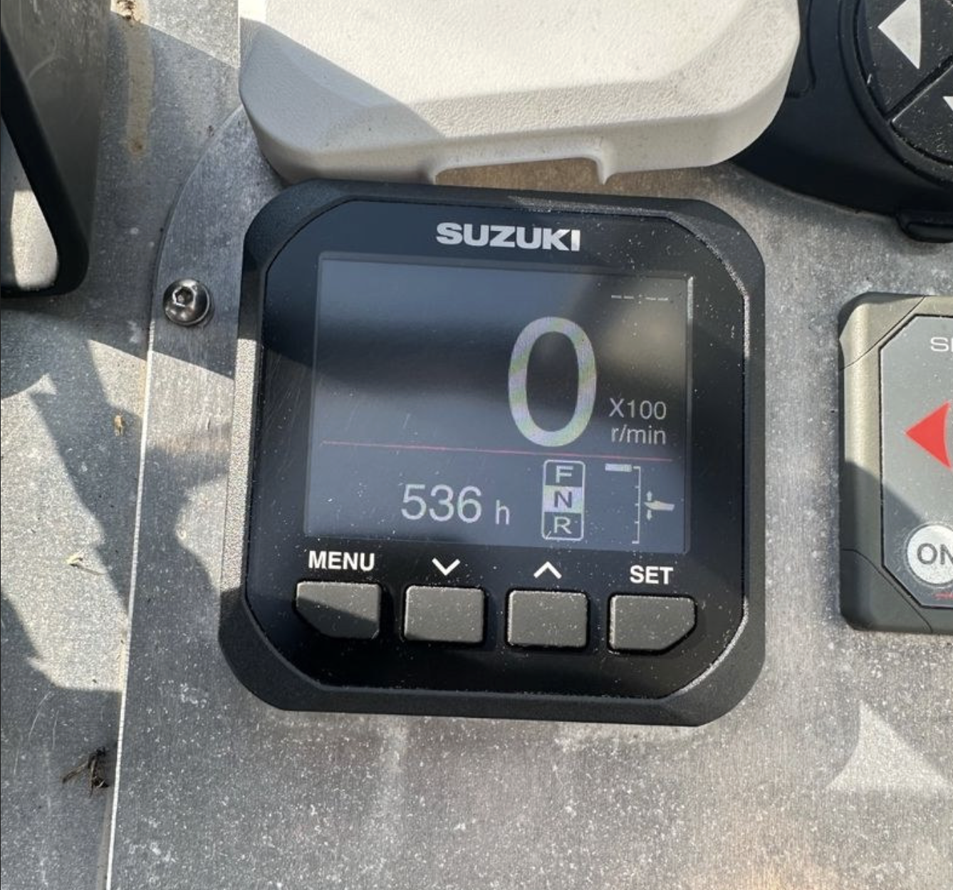 Detta exemplar är bestyckad med en 300 HK Suzuki som gått 536 timmar. Motorn har fått regelbunden service.