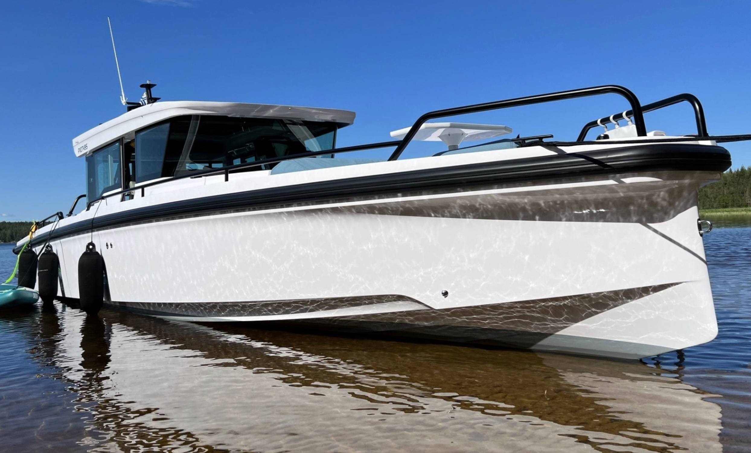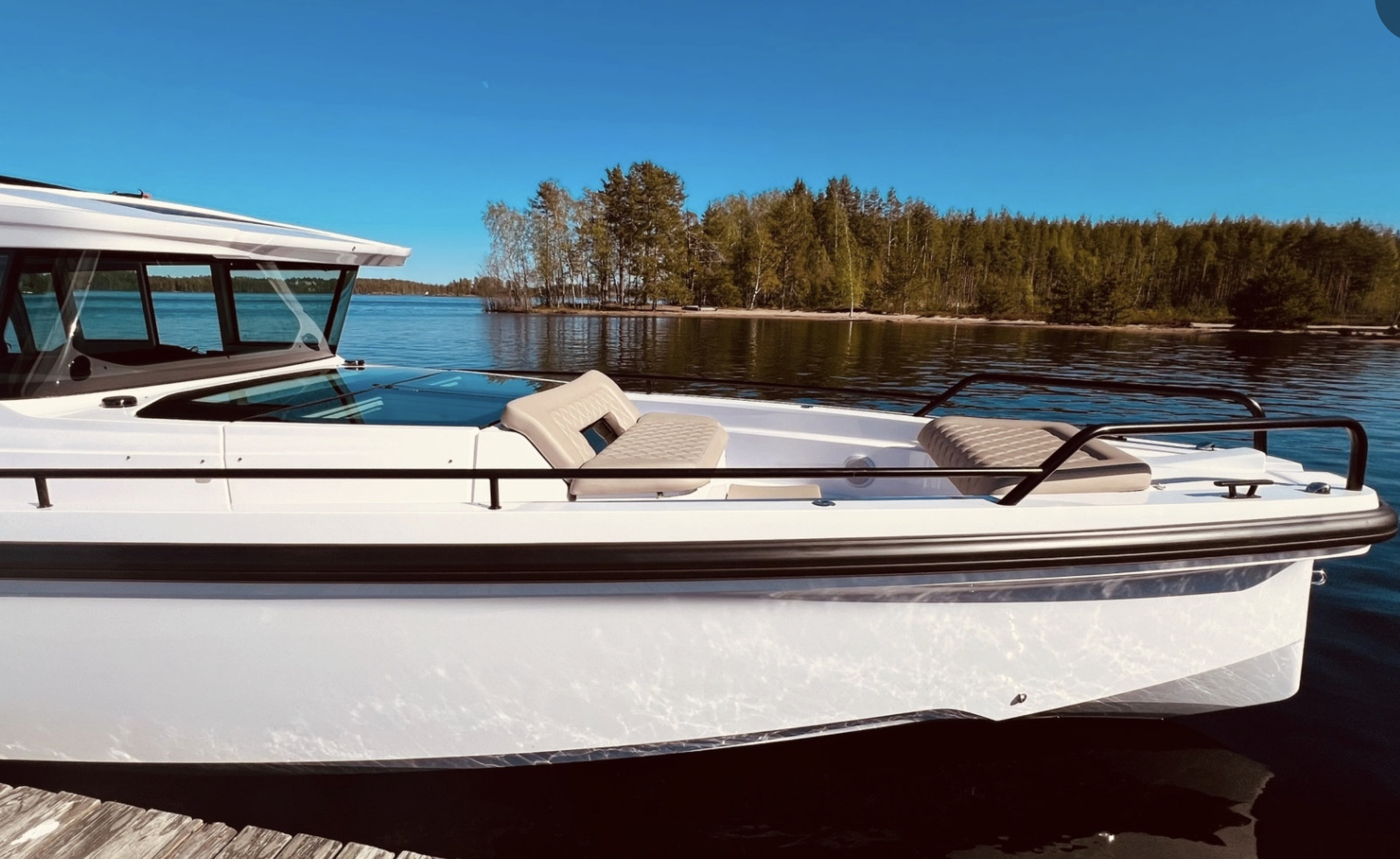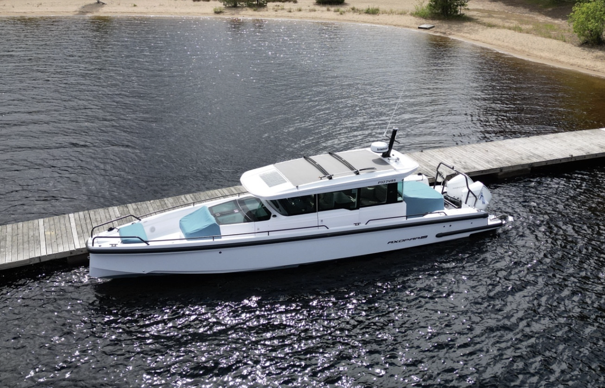 Axopar 37 XC har en modern och distinkt profil som tydligt sticker ut i sin klass. Den välplanerade styrhytten erbjuder bekväma sittplatser, bord och generösa sociala ytor, samtidigt som den ger väderskydd i nordiska förhållanden. Under däck finns en rymlig förkabin med sovplatser för flera personer samt separat WC och pentry, vilket gör båten väl lämpad för övernattningar. Akterut finns dessutom en akterkabin som kan användas som extra sovutrymme eller praktisk förvaring, vilket ytterligare ökar båtens flexibilitet.
