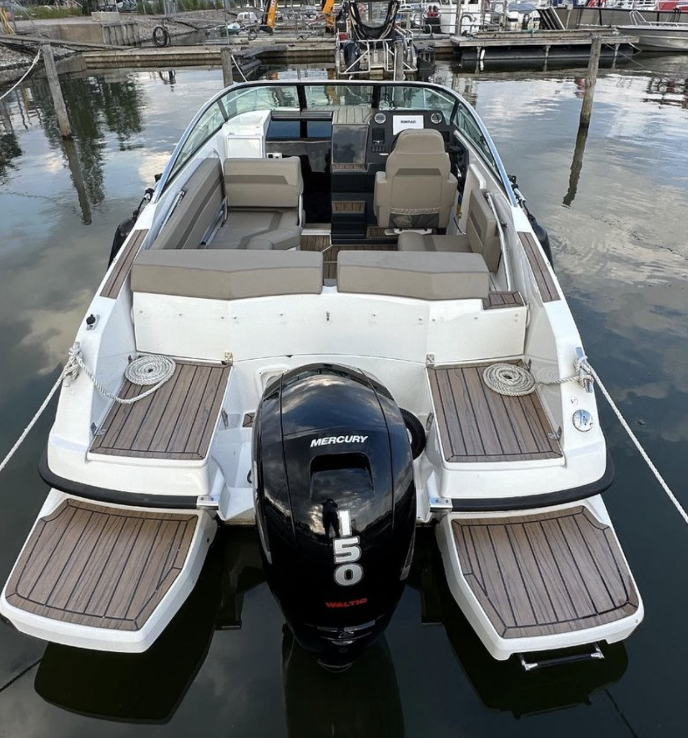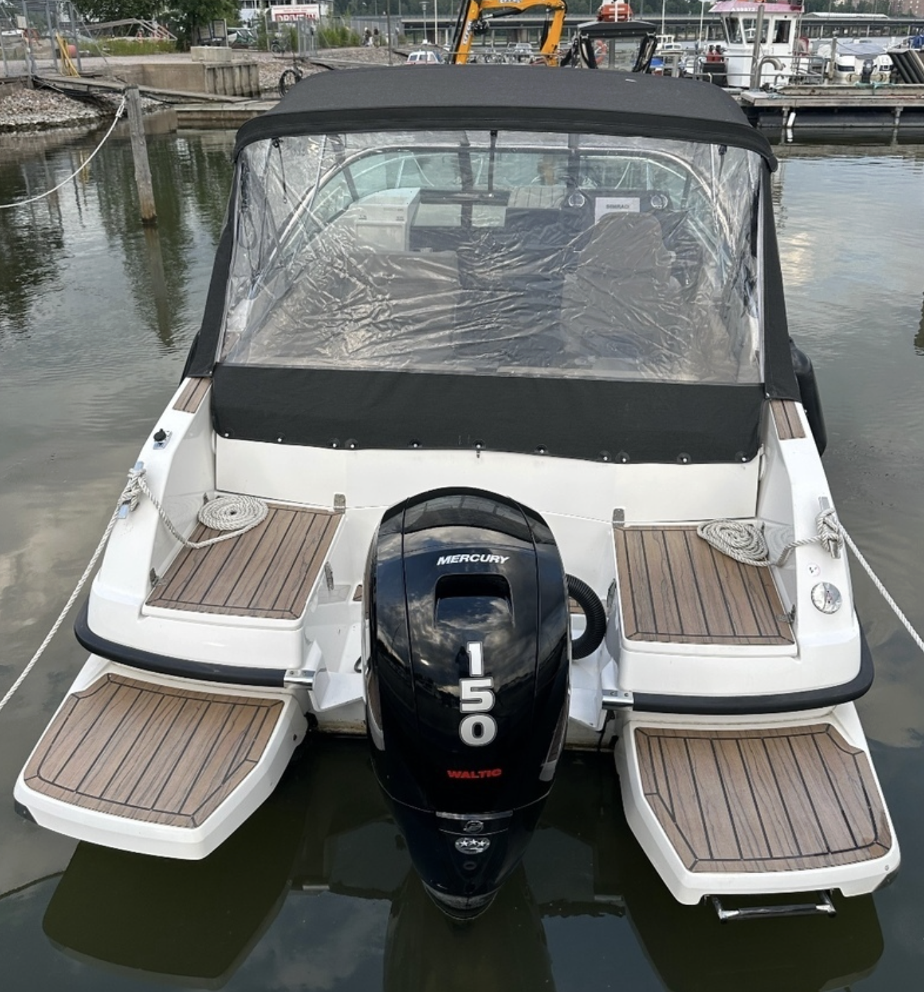 Båten är utrustad med en Mercury 150 hk utombordare med endast cirka 110 gångtimmar. Motorn har servats regelbundet och är i gott skick.