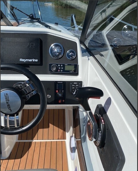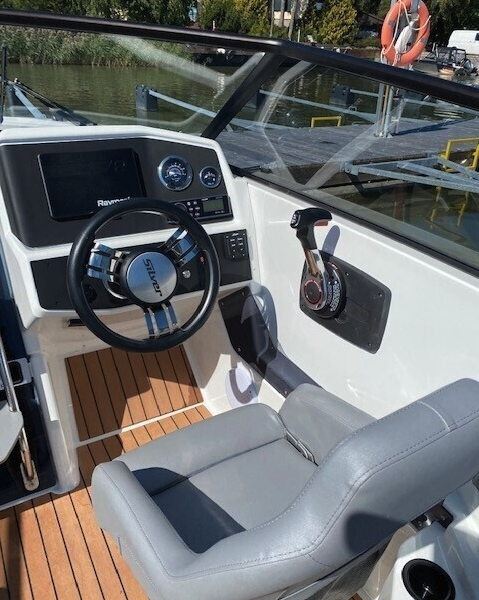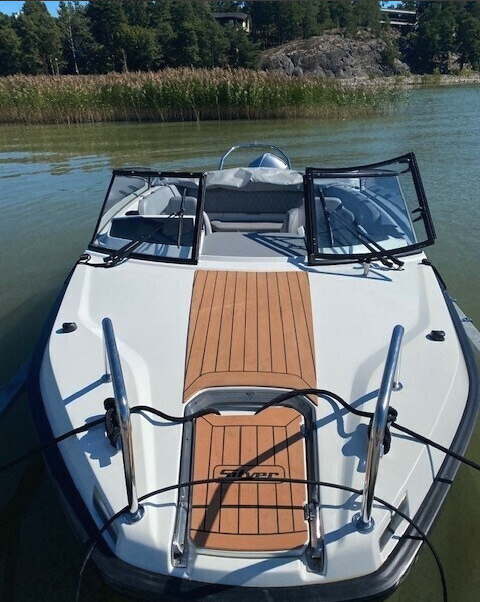Nu har vi en Silver Tiger DC till salu! Silver har balanserat båtens moderna och modiga design genom att köra med en stilren och tidlös interiör. Färgsättningen är lugn och harmonisk i en stilig gråton, med svarta detaljer som skapar kontrast. Durken i sittbrunnen, på främre däcket och på badplattformarna är av komposit-teak i en kall brun ton. Komposit-teakdäcket är ett mer miljövänligt alternativ till äkta teak, samtidigt som det ser bra ut, är enkelt att renhålla och behagligt att gå på. Den strömlinjeformade vindrutan, som sträcker sig långt ut längs med sidorna, ger bra vindskydd och ser till att föraren har god synlighet i alla väderförhållanden. Båten mäter 6,06 meter på längden, 2,36 meter på bredden och väger ca 1150 kg + motor.