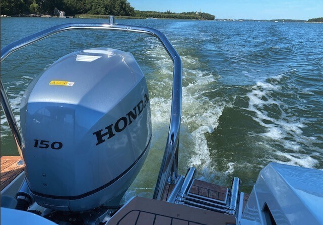 På båten sitter det en Honda med 150 hk av årsmodell 2019 som haft regelbunden service på auktoriserad verkstad. Motorn har dokumentation med 89 timmar bakom sig. Båten går väldigt fint och är i toppskick, förvarad i varmhall vintertid. Trailer ingår ej med båten.